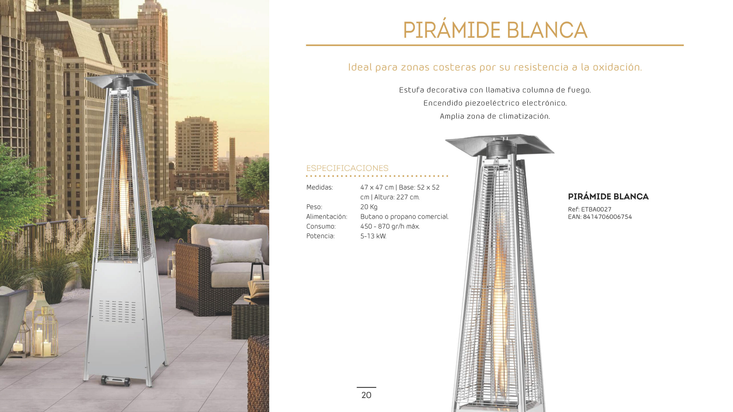 • Medidas: Reflector 47 x 47 cm | Base 52 x 52 cm | Altura 227 Alimentación: Butano o propano comercial